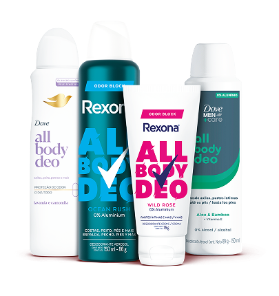 Composta por produtos All Body Deo, com as marcas Rexona, Dove e Dove Men+Care, a linha foi lançada nas versões aerosol e creme, e assim atende à necessidade dos brasileiros de conter o cheiro desagradável.